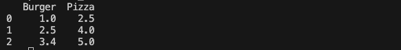 menu_history_df- If you did output your dataframe to make sure things worked as you might expect, you could see output like the screenshot below (but with more menu items and prices):